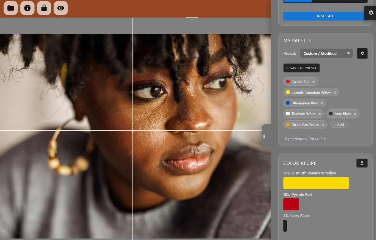 當然可以。您可以在應用程式中打開和關閉特定的顏料。然後,引擎會解決顏色數學問題,僅使用您物理調色板上實際擁有的顏料找到最準確的配方。